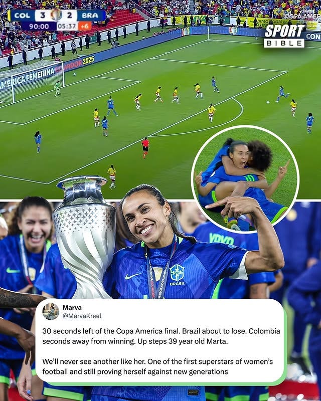 August started with Brazil snatching the Copa AmĆ©rica Femenina in a journey worthy of a movie, especially for our one and only queen, Marta. The 38-year-old, arguably the actual GOAT of womenās football, is not only not too old for the game, but she was pivotal in our win in Colombia last month. She deserves all the flowers we can give her, and I hope this was a prelude to the World Cup win that will crown her outstanding, legendary, trailblazing career.