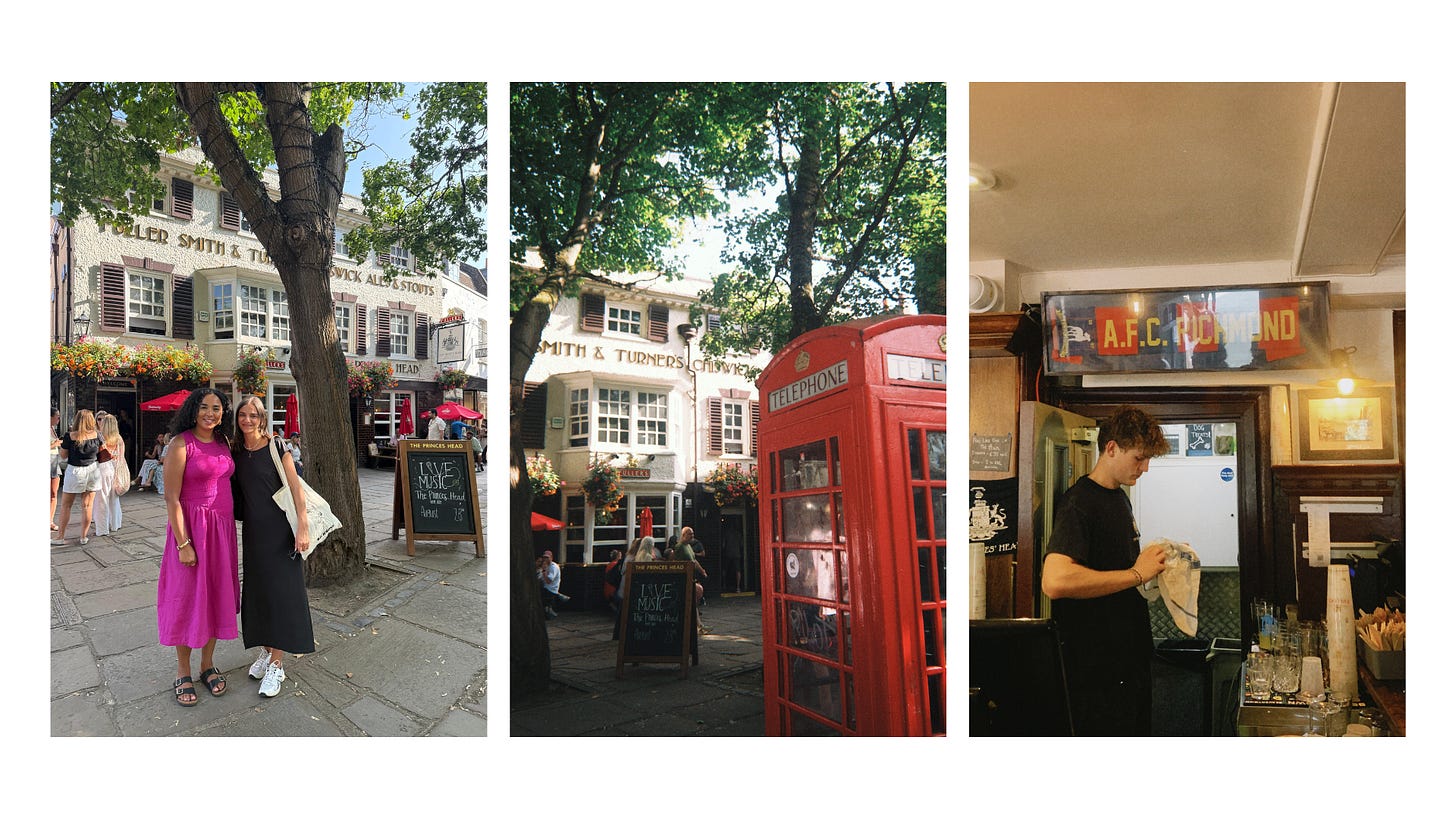, who took me to Richmond and gave me an exclusive and personalized Ted Lasso tour. You can imagine my excitement, and I still canāt believe we sat down at the Princeās Head pub and had a drink. Still, my favourite part was the conversation we shared about our experiences, struggles, and dreams in this life and industry. Iām so thankful to be surrounded by and connected to people as smart, fun, and kind as Hayley who, from a client, became a friend. If you donāt follow her yet, youāre snoozing, by the way.I left London with the desire to go back soon and more oftenādespite the price of coffee. As I get more engaged with womenās football, I know itās a key hub for those wanting to shape the game, and Iām signing up for that. So, yeah, Iām officially looking for clients and projects over the pond. If youāre in London and have ideas, letās talk.