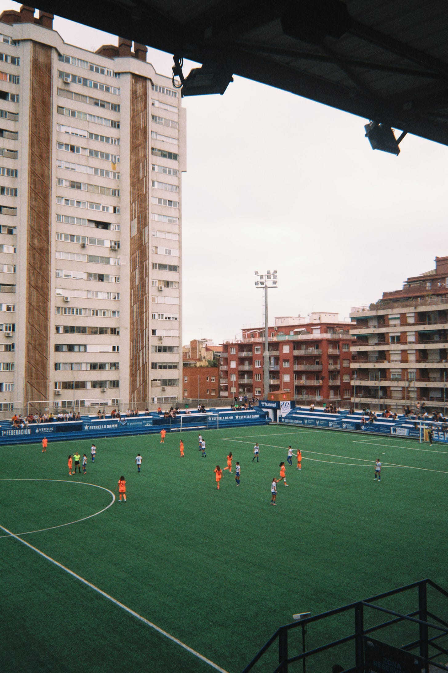 We went to support a friend who plays for Barça’s youth women’s team against a very local Barcelona club in an iconic stadium tucked between buildings, with neighbours watching from their windows. The game was great, we won, our friend scored, but my favourite moment happened after the final whistle.